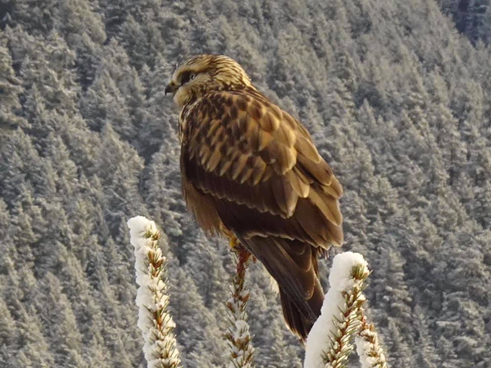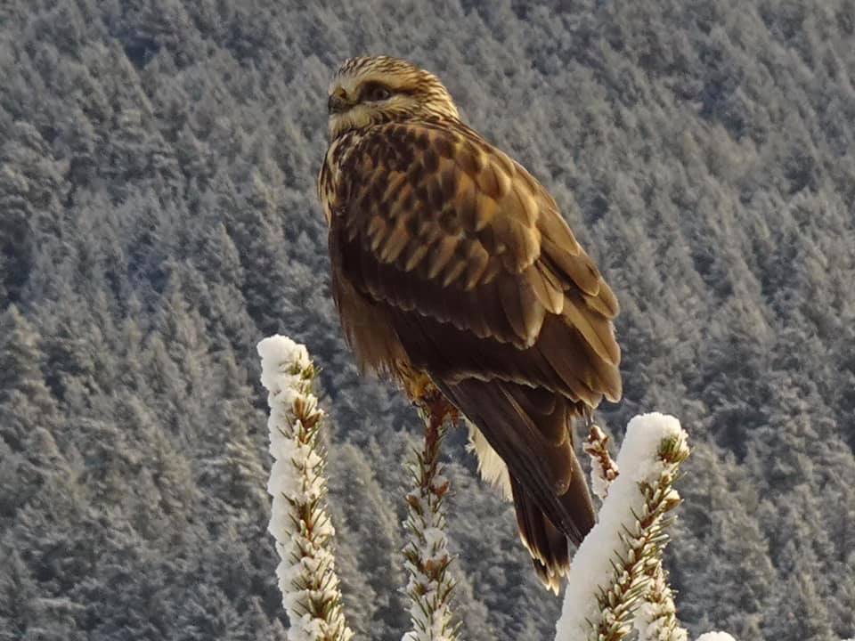 According to the Pemberton Wildlife Association’s list of Pemberton Birds (download it here: http://www.pembertonwildlifeassociation.com/media/21166/pwa%20-%20bird%20list%202015.pdf), the Rough Legged Hawk is a seasonal visitor.