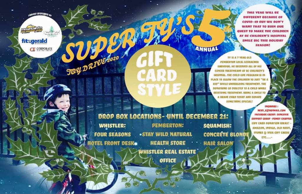 There are a few lovely invitations floating around right now, that might provide a way of having an impact in the community and beyond, initiated by and for local families. You could donate a gift card to kids who will be spending their Christmas at the BC Children’s Hospital through Super Ty’s 5th annual Toy Drive. You could contribute to the GoFundMe to offer a little bit of support and a fierce wave of love to Kevin Damaskie and his family. You could make a contribution to the Christmas Hamper program for families and seniors, being put together by Sea to Sky Community Services. Or contribute to the Food Bank that supports your community.