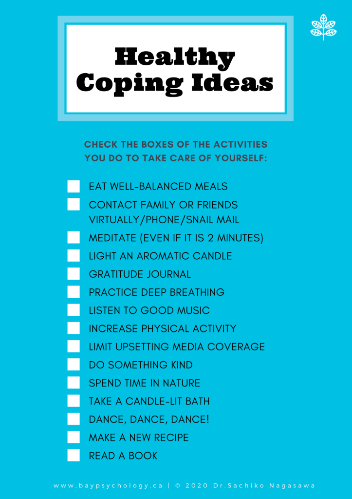 So, yes to eating well-balanced meals. Yes, to the list of 15 healthy coping ideas. And yes to crawling over to the corner of your room and throwing your legs up the wall. Begin where you are.