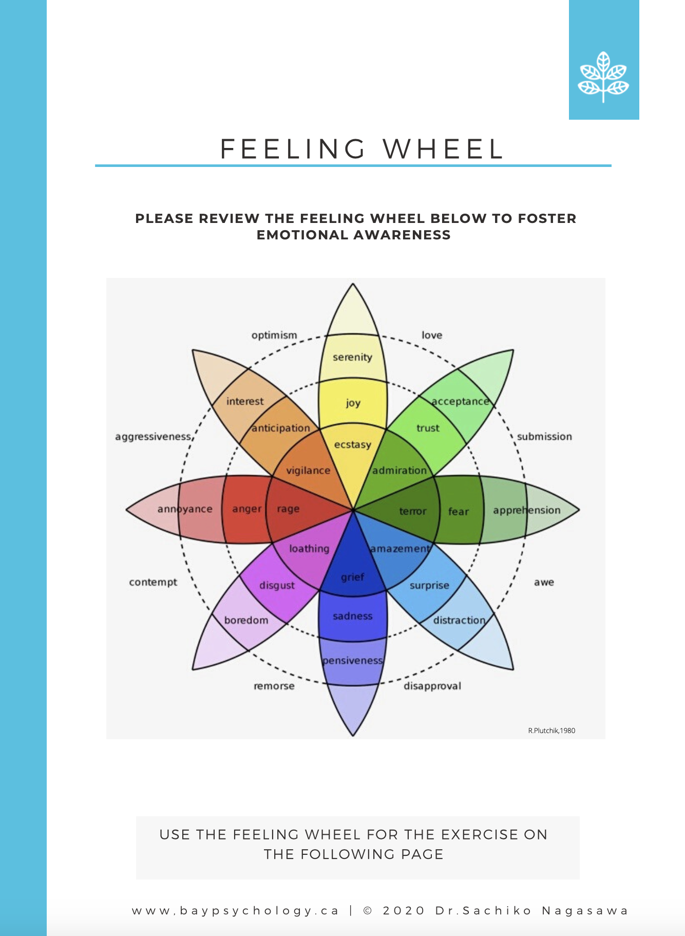 2. You look at the feelings wheel and see if you can name a more specific feeling than “blue”… pin it down, so it isn’t an overwhelming atmosphere, but is just a little cloud, taking the shape of a whale, moving across the sky, and soon to dissipate… and with a more specific word, you can take an action to help respond and tend to that feeling.