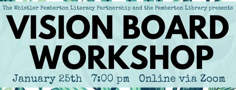 Facilitated by Jill Dawson, and presented by the Whistler Pemberton Literacy Partnership, the workshop is a chance to take over your dining room table, and with good virtual company, use your ideas, thoughts, dreams, and wishes to create a vision board.