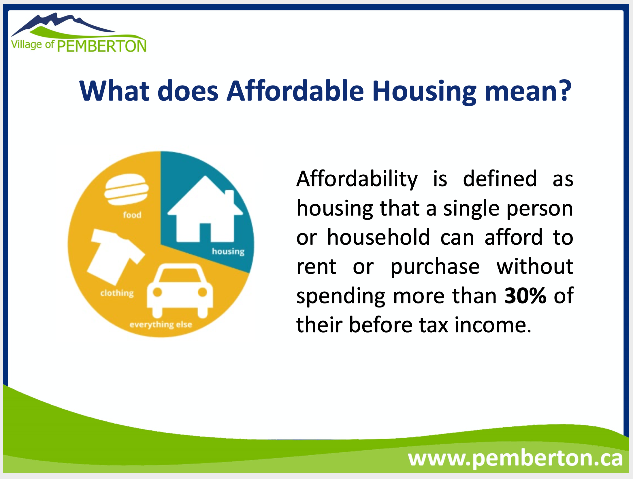 Currently, very little housing in Pemberton is considered affordable.