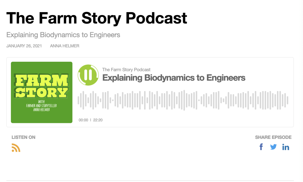 Check the link here for a 20 minute listen of Farm Story slash “but I digress” the podcast – this episode is all about biodynamics, which is a mysterious practice that has been an agricultural movement that delicately blends science and spirituality. Anna is the least witchy person I know… so it’s intriguing to me, to hear her delve into biodynamics and why it works, and how she’d convince an engineer that it’s completely solid as a methodology (despite Steiner, the founder’s, conviction in the influence of the cosmos and moon cycles.)