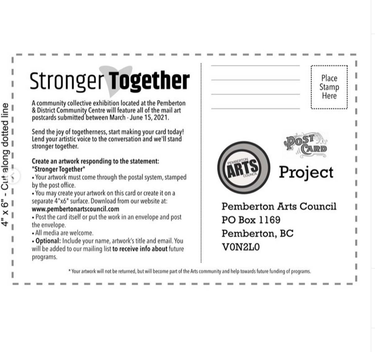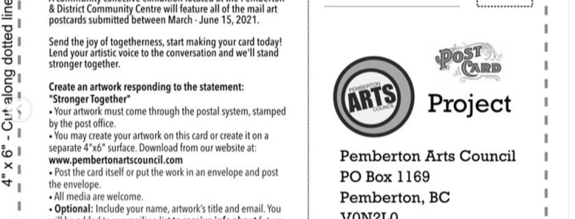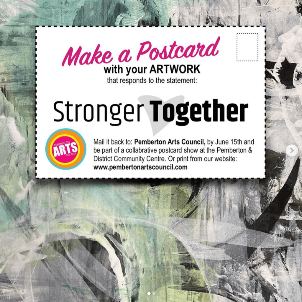 - All postcards arriving by June 15, 2021 will be exhibited in a community collective exhibition located at the Pemberton & District Community Centre.