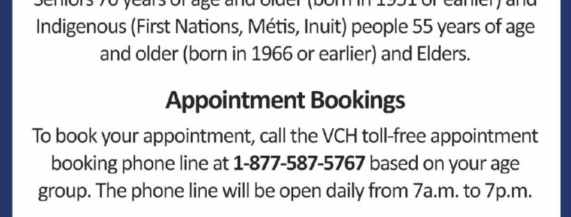 Covid vaccinations at the Pemberton Community Centre, April 7, for seniors over 70 and First Nations over 55 March 29, 2021March 29, 2021 To book your appointment, call 1-877-587-5767, between 7am and 7pm. This is part of the third phase of BC’s COVID-19 Immunization Plan. Share this: Click to share on X (Opens in new window) X Click to share on LinkedIn (Opens in new window) LinkedIn Click to share on Facebook (Opens in new window) Facebook Click to share on Pinterest (Opens in new window) Pinterest Click to email a link to a friend (Opens in new window) Email Click to share on Tumblr (Opens in new window) Tumblr Like Loading... Related Published by Lisa Richardson View all posts by Lisa Richardson