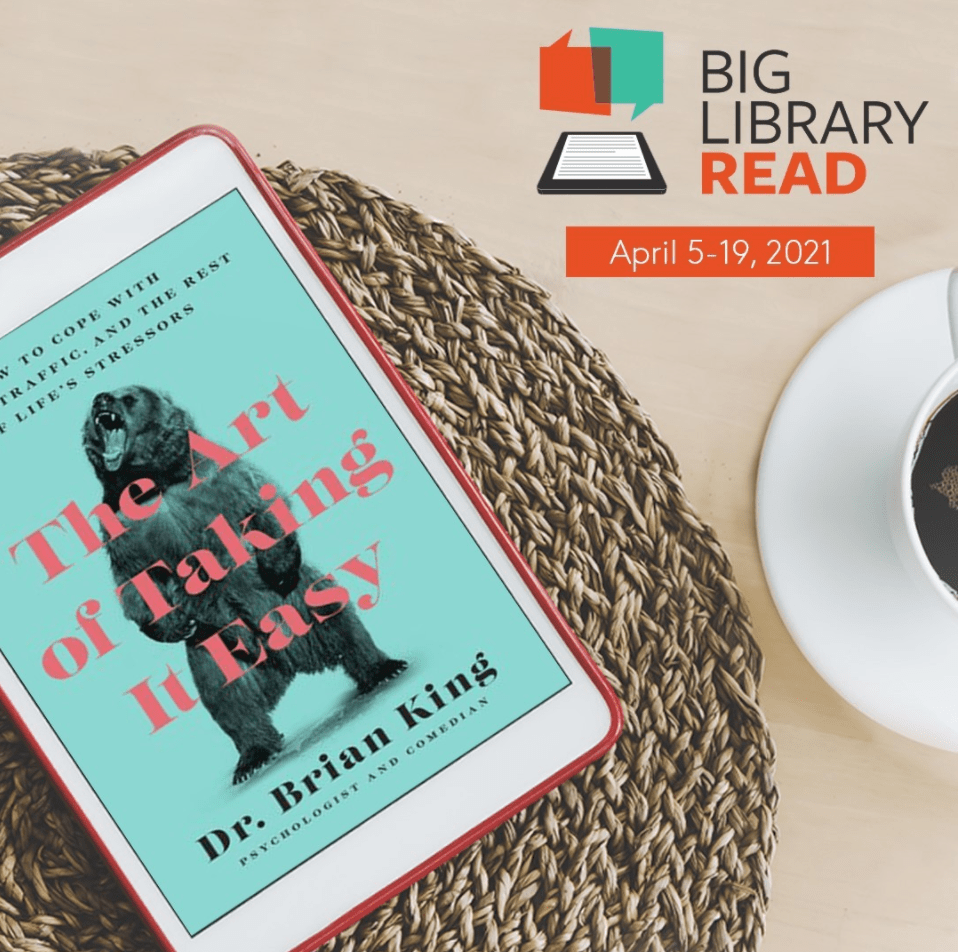 Join the #BigLibraryRead digital book club! Borrow the ebook ‘The Art of Taking It Easy’ by Dr. Brian King from Libby with no waitlists or holds April 5-19, 2021!