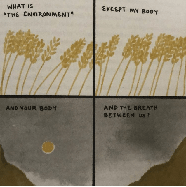 Madeleine Jubilee Saito nails it. When I saw this, I stopped hard. THIS. THIS. THIS is what “the environment” means. It’s not something in constant tug of war against the economy. It’s us. It’s our interrelatedness. It’s what is in us, around us and between us. Isn’t that marvellous to think about?