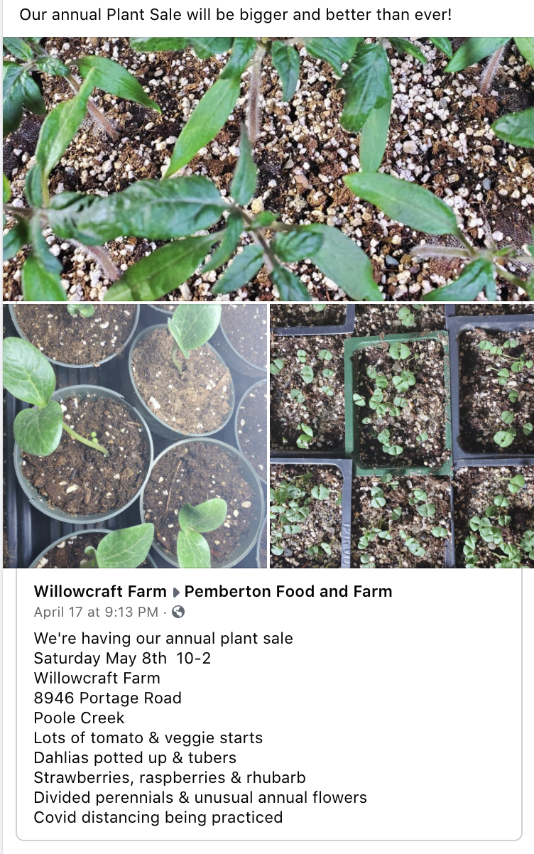 You can also support the Pemberton branch of the Women’s Institute at their May 1 Plant and Bake sale.