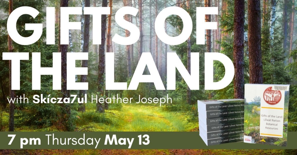 Skícza7ul Heather Joseph, from both N’Quatqua and Líl’wat, will be using The Gifts of the Land to share stories and some of the traditional stories of her people with these medicines in connection with/to/and on the land of the Lil’wat nation.