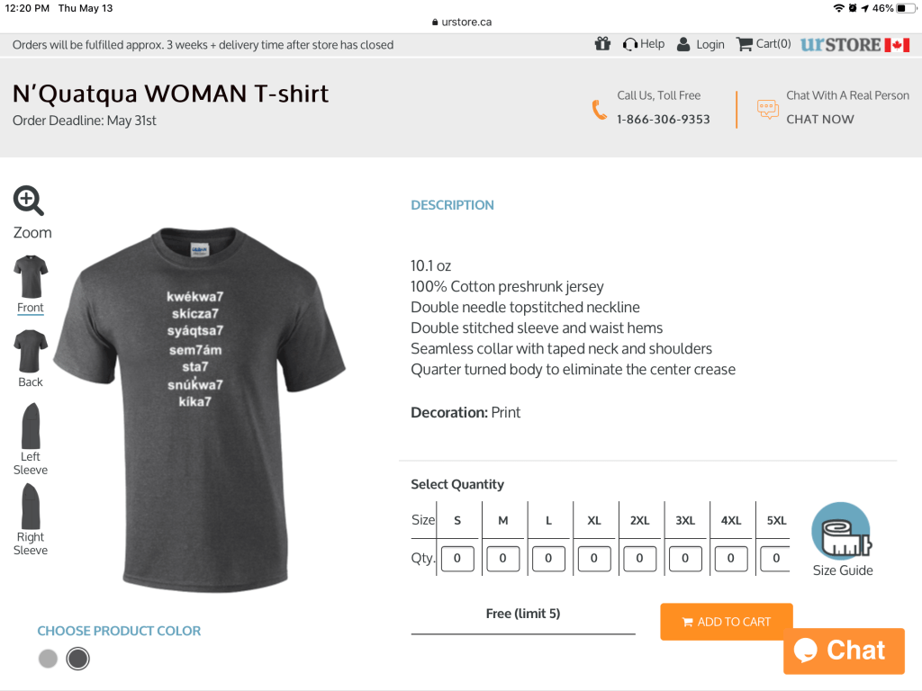 And any other friends and allies and uplifters of women and of language, are invited to buy one for themselves, or a friend, for $9.95. If you’d like to buy one, use this link: https://urstore.ca/group/nquatqua-woman-t-shirt-paid