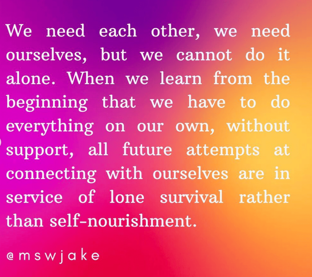 I want to add more nuance here because sometimes this causes us to overlook an important factor: Coregulation is a prerequisite for self regulation. Feeling safe with someone else is a prerequisite for feeling safe within ourselves. Coregulation is a biological imperative and we need each other to survive.