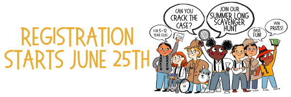 This year’s theme of our Summer Reading Club is Crack the Case and will feature a summer-long scavenger hunt, puzzles, mysteries to solve, fun weekly activities, and of course reading!