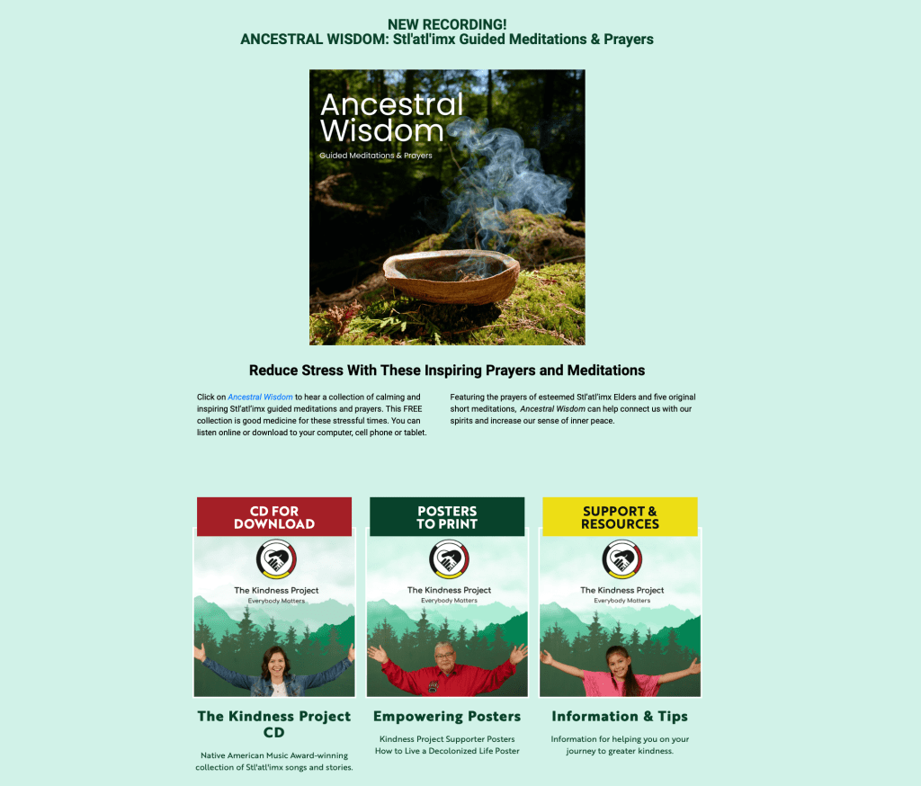 Click on Ancestral Wisdom to hear a collection of calming and inspiring Stl’atl’imx guided meditations and prayers.