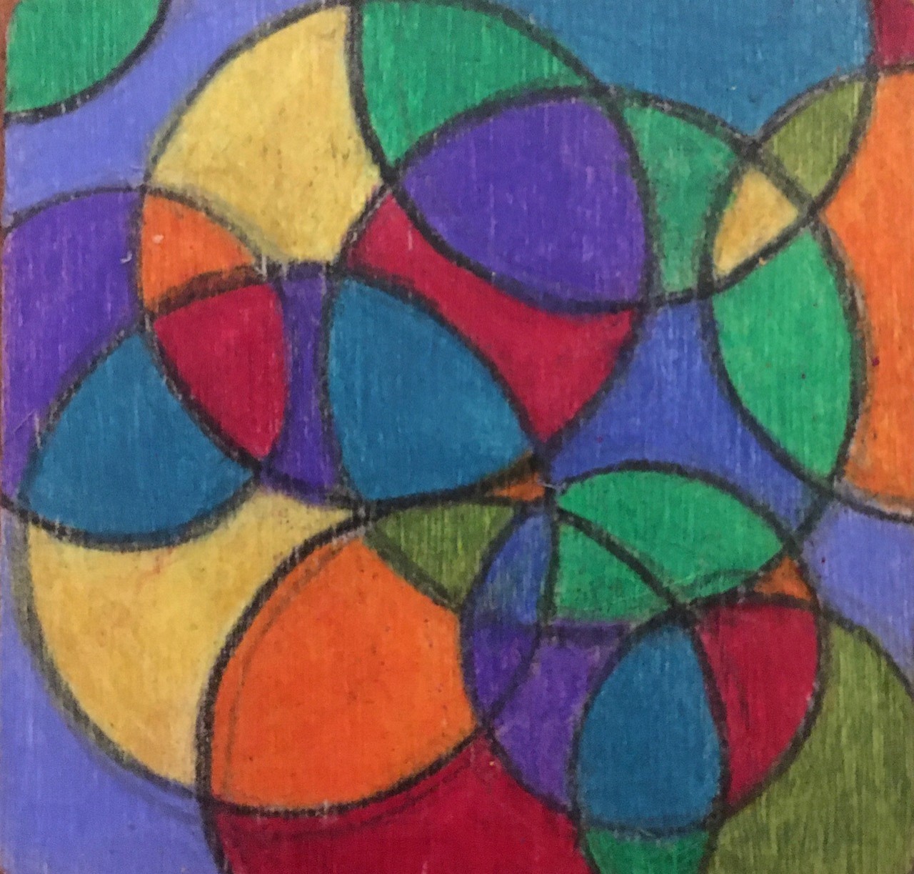 In “Abstract”, the many overlapping circles represent the different roles and descriptions I take on. Some roles/circles are close to each other, and some are far away. Some seem close to the surface, and others are more in the background.