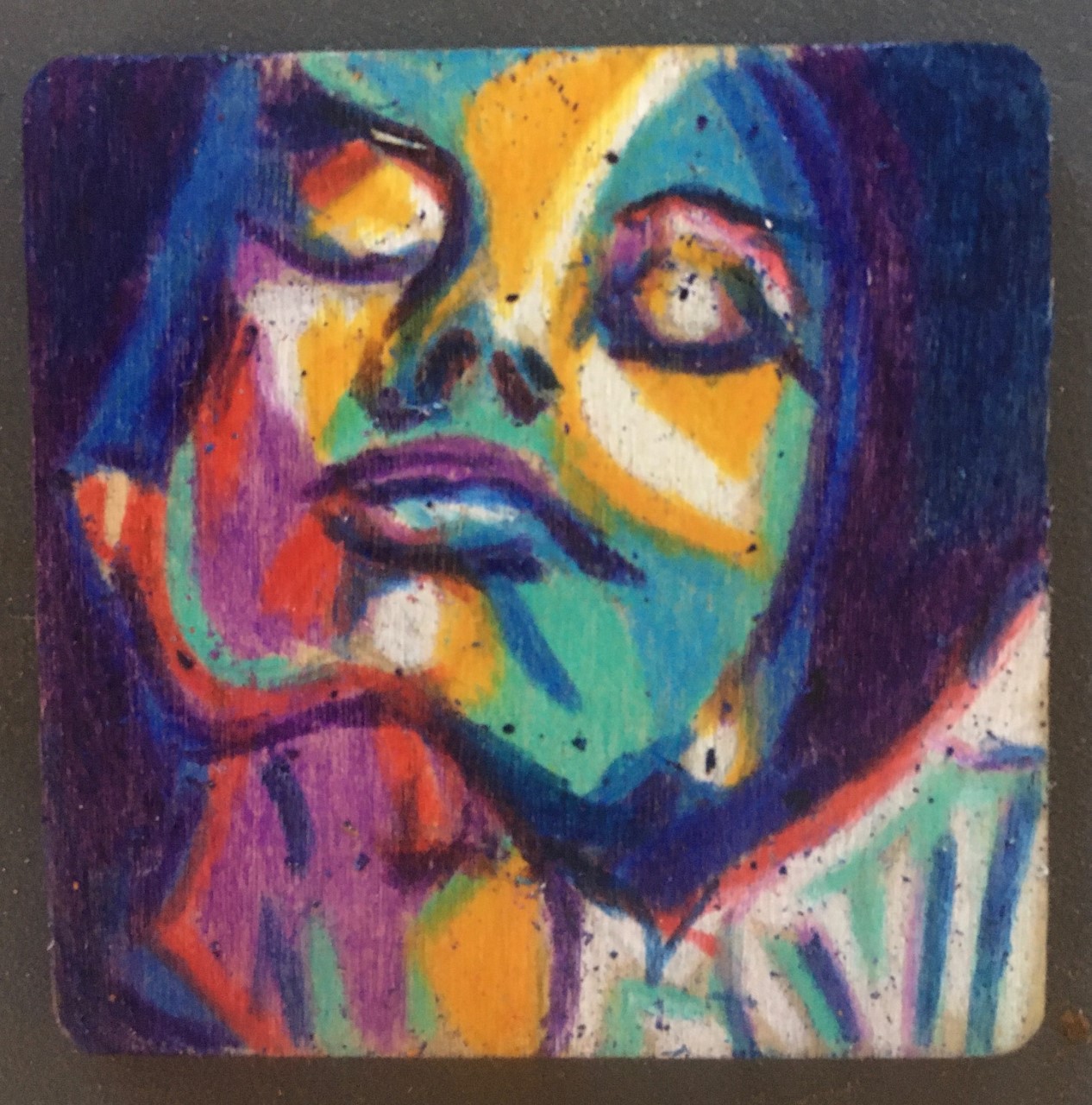 Through the drawing “Motherhood” I see that intersectionality doesn’t actually happen in clean and tidy circles. The patterns of colour on the face show that intersectionality is messy. The image reminds me that a person in progress can be beautiful and messy.