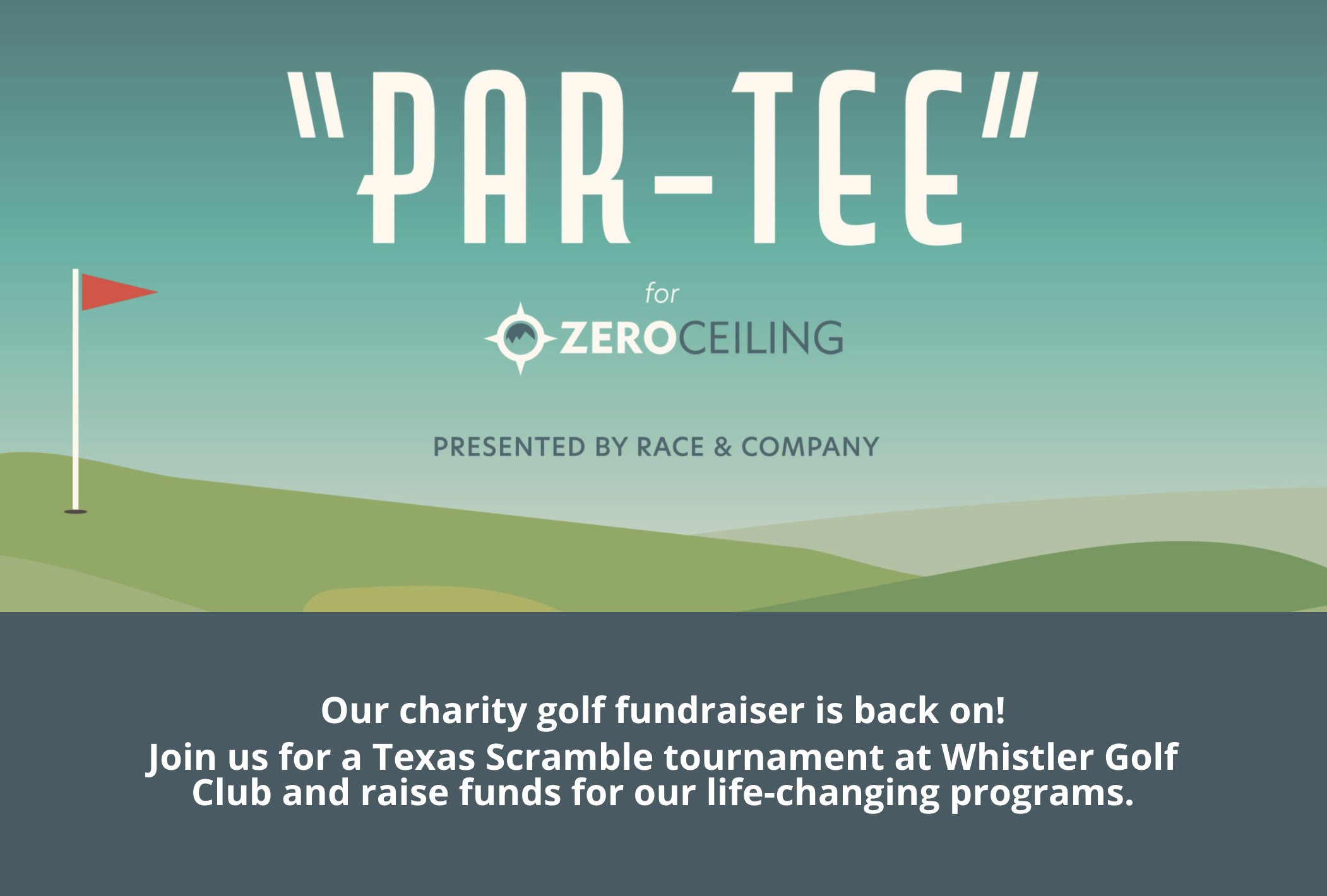 So, the Thursday September 23 Par-Tee for Zero Ceiling, presented by Race & Company LLP, is a chance to come out of our shells, and celebrate, and support this amazing organization.