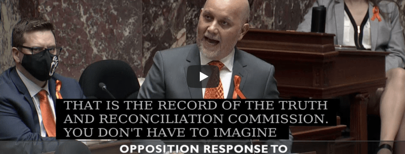 “We know that if these children were not indigenous, but European, that we would not have been slow to act. IN our society, it’s just a fact that in Canada and British Columbia some children matter less. Underneath the shiny happy facade of Canada and British Columbia, lurks a shameful past. For 30 years my relatives have been sharing their experiences from these despicable institutes, and they have been hushed, they have been told Canadians don’t want to hear their stories, they were told to stop lying, to stop embellishing. For indigenous people this story is not shocking nor is it unimaginable. This is the trauma our families have carried for generation. When people ask me what our problem is, why don’t we pick ourselves up, they haven’t wanted to hear the answer.”