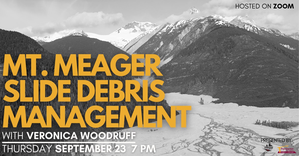 Veronica Woodruff from Stewardship Pemberton Society joins the Pemberton and District Public Library tonight, virtually, to talk about an exciting initiative that proposes to manage the Mt. Meager landslide debris.