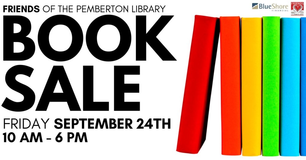 AND there’s more! Tomorrow, between 10 and 6, stock up on reading material at the Friends of the Library’s annual Book Sale. Books by donation, available outside Blueshore Financial.