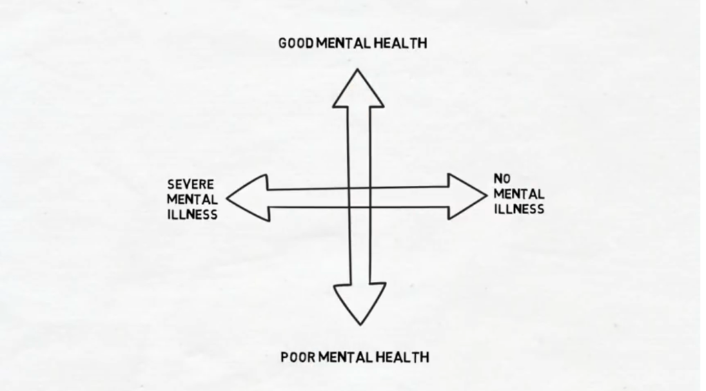 If mental health and mental illness are two different ideas, what’s the relationship between them? Sometimes, people see them as two ends of a continuum, with one opposite to the other.