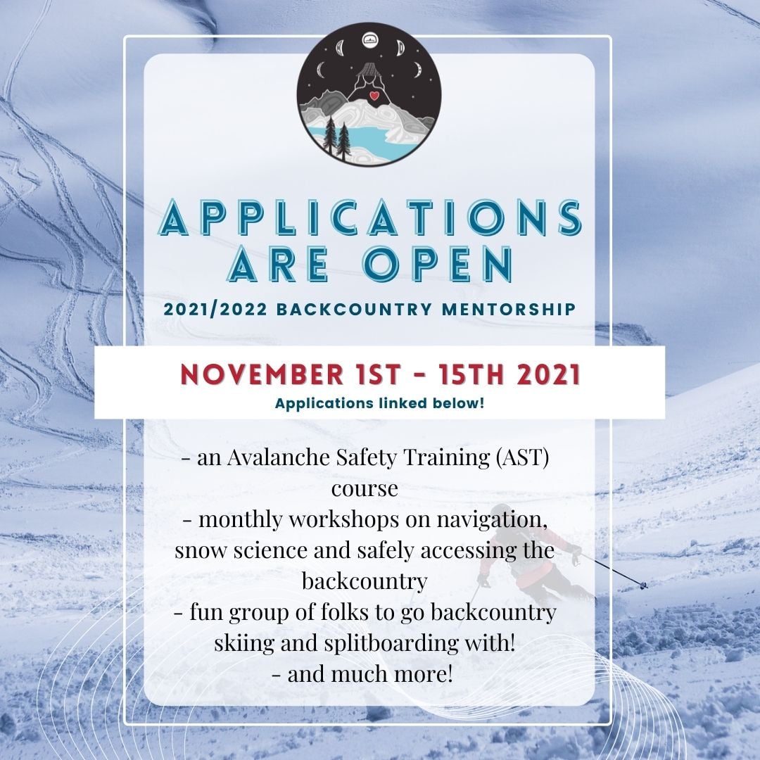 This program is open to all Indigenous Women and Nonbinary community members who live in the Sea to Sky area and are intermediate skiing and snowboarding riders. It will run from December 2021-April 2022, with a commitment of 2 days per month (at least one riding day, and at least 1 workshop). You will be provided with an Avalanche Safety Training (AST) 1 course, which is mandatory for entering the backcountry. There will be many workshops to further your knowledge such as backcountry cooking/nutrition, navigation, snow science and more. As well as group ski tour/split board days to put your new knowledge into action.