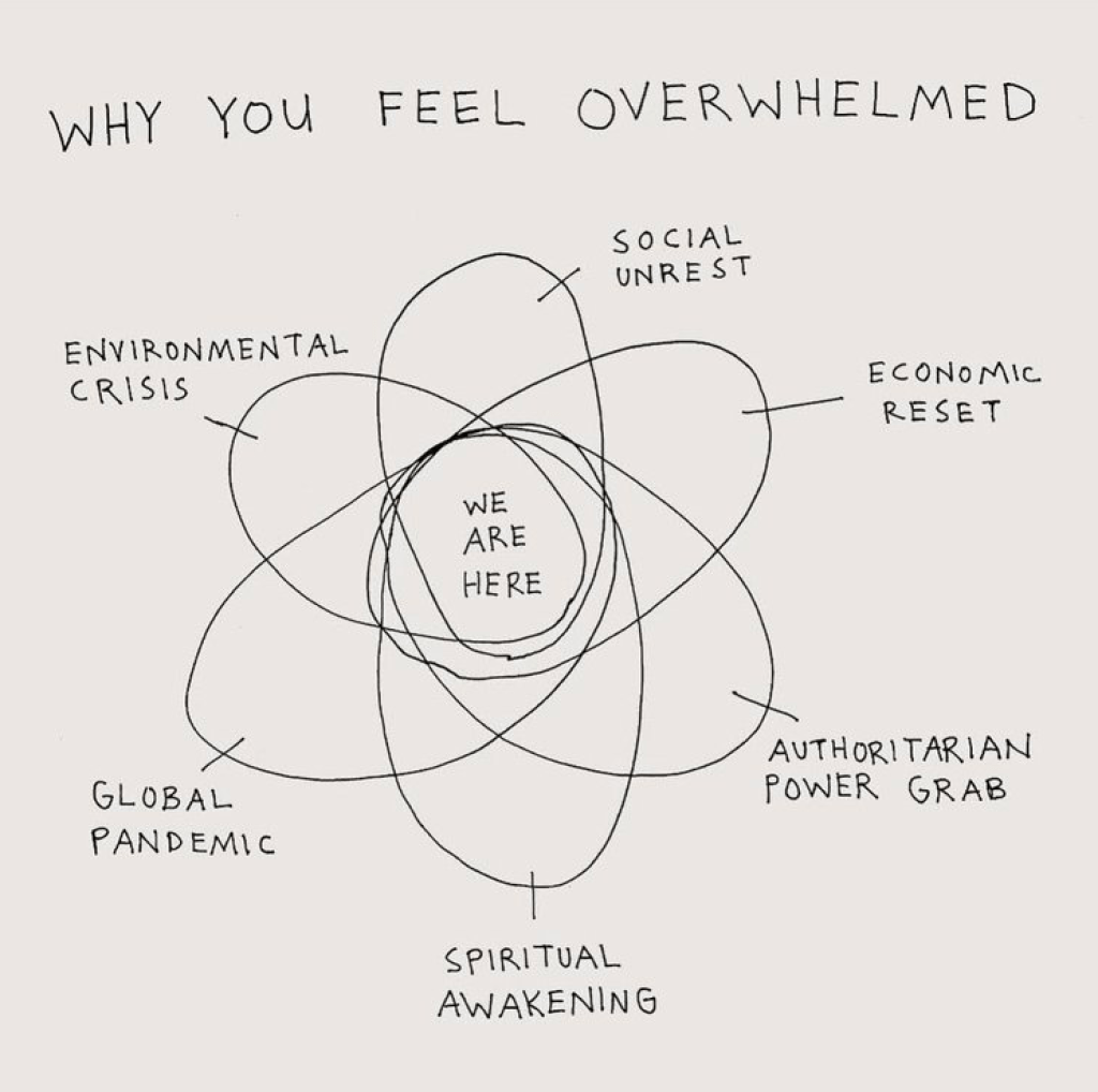 I share this mostly to normalize feelings of distress or stress or anxiety or overwhelm or sadness. I’d venture to, without any professional qualifications, say, that if you are feeling stress, distress, anxiety, overwhelm or sadness right now, that actually doesn’t mean there’s anything wrong with you. Oh friend. It’s probably a deeply healthy response.