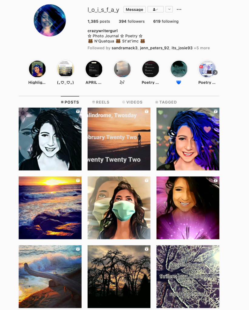 We have a poet-in-residence for the first time! Welcome new contributor, Lois Thevarge, from N’Quatqua, with writing Wednesdays