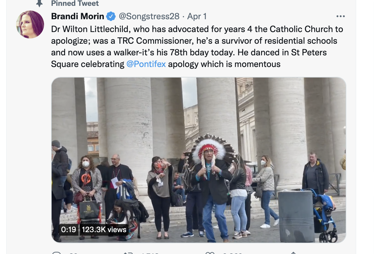 <blockquote class=”twitter-tweet”><p lang=”en” dir=”ltr”>Dr Wilton Littlechild, who has advocated for years 4 the Catholic Church to apologize; was a TRC Commissioner, he’s a survivor of residential schools and now uses a walker-it’s his 78th bday today. He danced in St Peters Square celebrating <a href=”https://twitter.com/Pontifex?ref_src=twsrc%5Etfw”>@Pontifex</a> apology which is momentous <a href=”https://t.co/8al4YDELAU”>pic.twitter.com/8al4YDELAU</a></p>— Brandi Morin (@Songstress28) <a href=”https://twitter.com/Songstress28/status/1509883431789993986?ref_src=twsrc%5Etfw”>April 1, 2022</a></blockquote> <script async src=”https://platform.twitter.com/widgets.js” charset=”utf-8″></script>