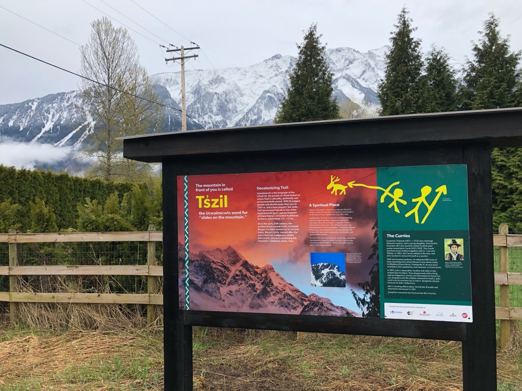 And then she was off, walking the trail and having the conversations that make things happen, talking with the Mayor, finding a writer, partnering with the SLCC, commissioning a designer, writing letters, securing permissions, inviting people into the unfolding story, and now, at the corner of Airport Road, on the Friendship Trail between Pemberton and Mt Currie, there is a sign that is designed to help us, as all good signs are meant, to find our way.