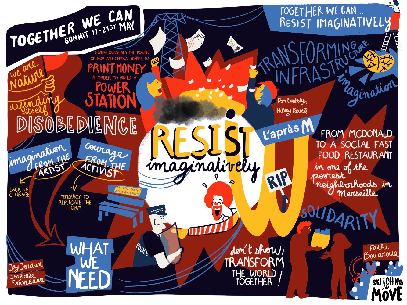 The Lab was established because activists often reproduce the same old forms of resistance – the blockade the march, the vigil, the boycott and we need new forms of resistance to surprise ourselves and the authorities, who learn to repress resistance faster than creative instigators can come up with them. So, they want to bring together artists and activists to co-design and deploy creative forms of resistance. Because, artists bring creativity, lateral thinking, and big egos and a lack of courage. Activists bring ease with collective processes, and courage, but a tendency to repeat the same old forms. The synthesis between the imagination of the artist and the courage of the activists is the place to explore, with participatory processes and experiments, ideally anchored with movements or places.