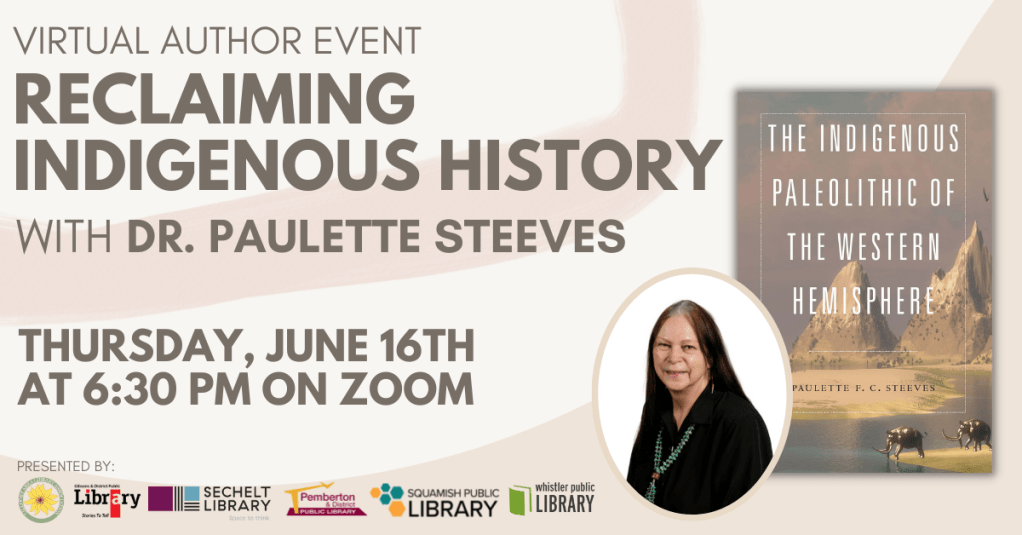 Join the Pemberton and District Library for a virtual talk about new understandings showing Indigenous people arrived in the Americas before 12,000 years ago, from her book The Indigenous Paleolithic of the Western Hemisphere.