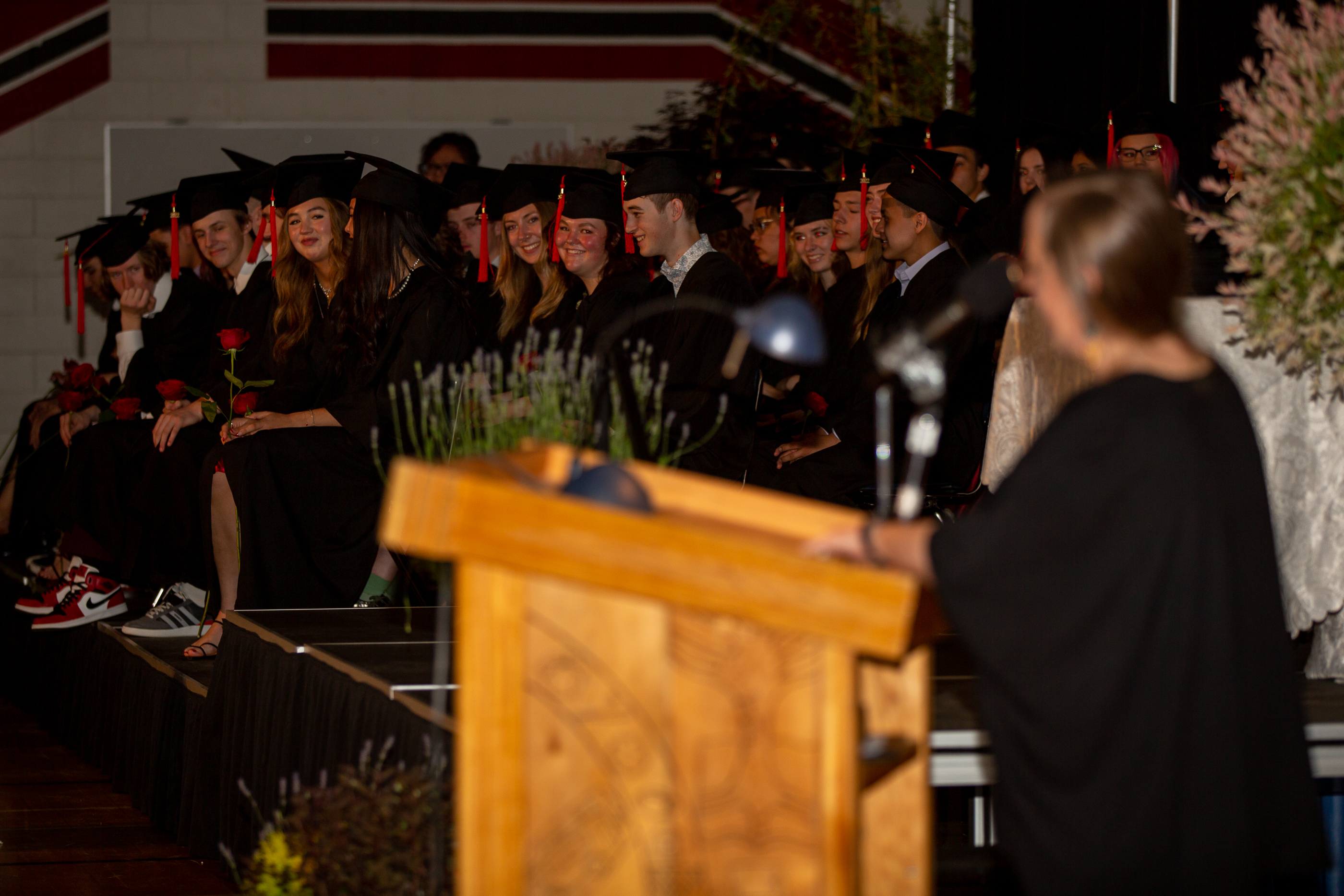 Each year, the graduating class votes on the teacher they’d like to hear give a speech on behalf of the staff, and the parent who they’d like to represent the parents, and the class of 2022 picked Hayden Kuiper’s mom, Nic.