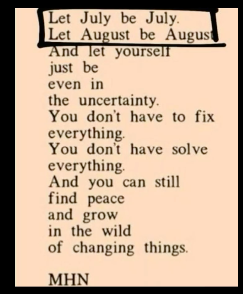 Lois Fay’s parting post for her takeover last week was this delicious offering, that is ringing like a bell for me… who somehow carries a load of sheepishness or guilt that I haven’t tried to optimize July or August more… that I asked the summer to be a time for rest. For being just what July wanted to be. And just what August wanted to be. Thanks, girl. Kuk’stum, kika.