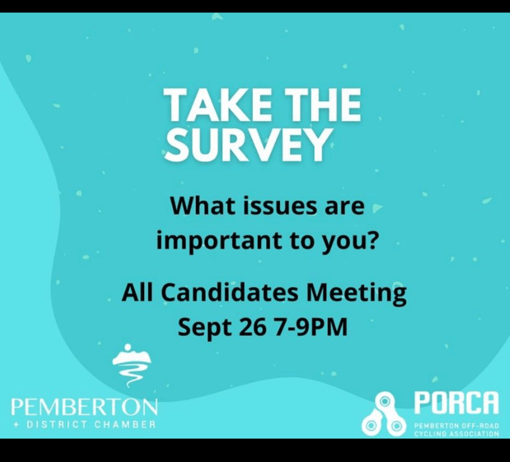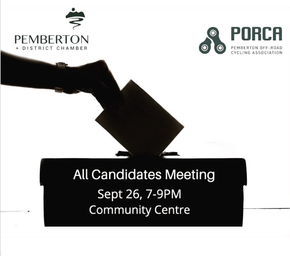 PORCA and the Pemberton & District Chamber of Commerce are combining forces to host an All Candidates Meeting Sept 26 from 7-9pm at the Pemberton Community Centre.