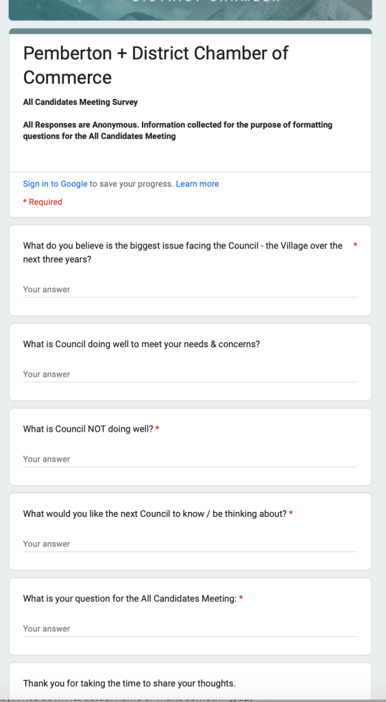 To help shape the discussion in advance, you are invited to access a short ANONYMOUS survey which will help provide questions for the All Candidates Meeting at https://docs.google.com/forms/d/1xDfIPQTqfQPUUoXEUCP5YykEa2yvlqgGzPcQ3avS1O4/viewform?fbclid=IwAR2ET466BuJY4U06WdfBnCeeD81m9YNT41Mtr6osIXYfGXdJ91poctuT58M&edit_requested=true