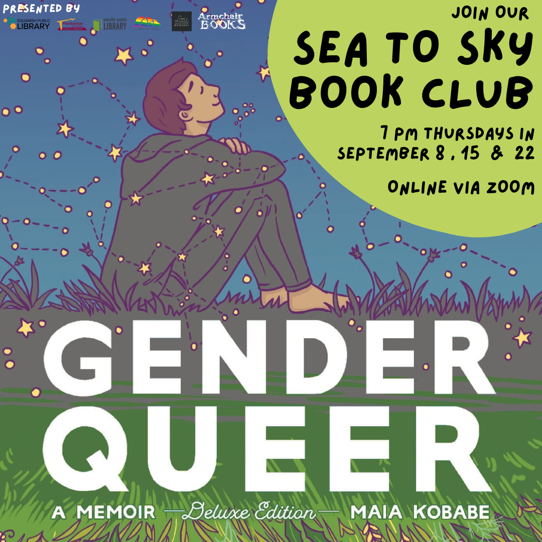 This the Sea to Sky Book Club, which brings together three libraries, and readers from up and down the corridor, will discuss Gender Queer by Maia Kobabe.