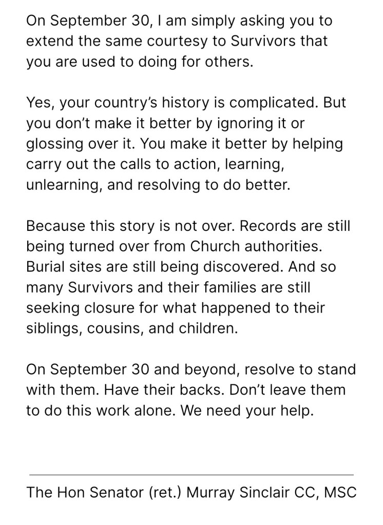 And so, in that spirit, of the ongoing commitment, to walking towards each other, I want to share this post from Melody Charlie, who styles herself on instagram as @firstnationphotographer, and writes, with a trigger warning, what this means.