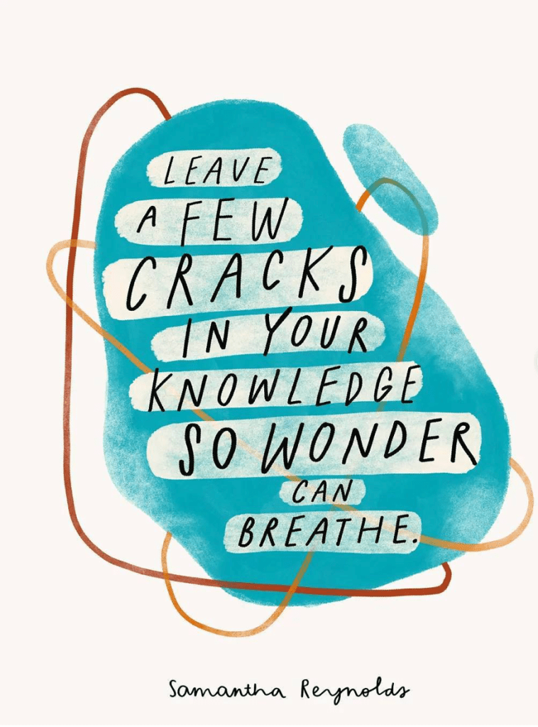 It feels good to be in the know… believe me, I know. But sometimes, what we need is to let go of our knowing, our certainty, our fixed sense of how things are… and hold it all a bit more lightly… so that wonder can breathe, as the beautiful poet @bentlily, Samantha Reynolds, writes, and so that something we’re not expecting can come through the door.