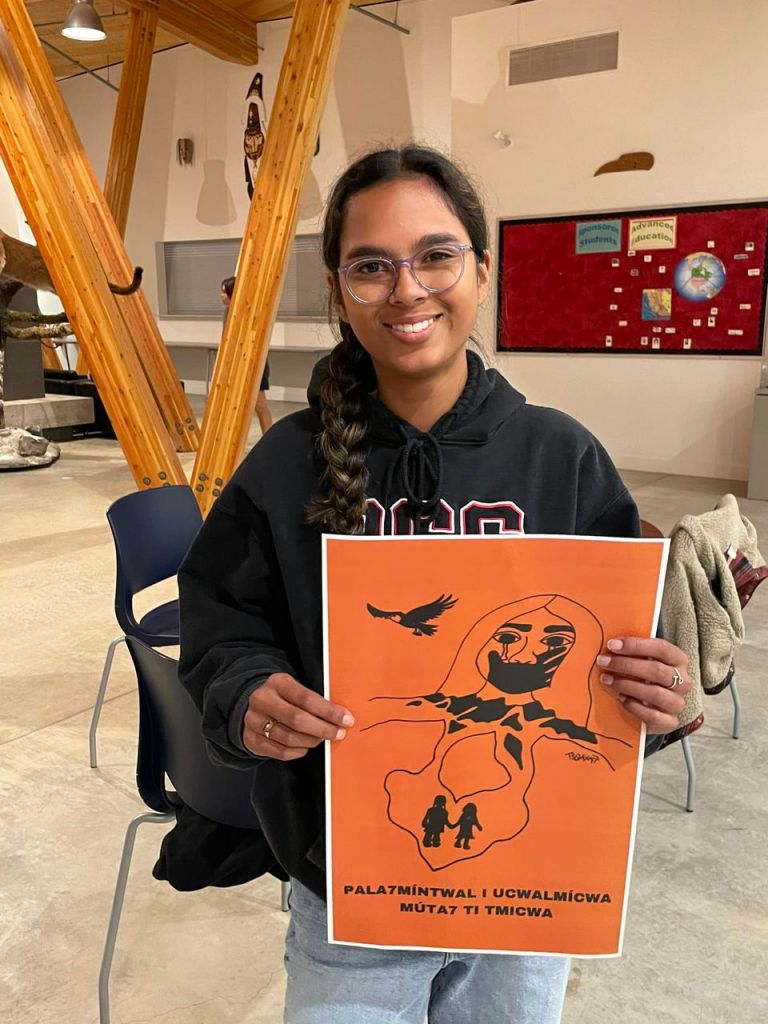 Next Orange Shirt Day (Truth and Reconciliation Day), you’ll be able to wear a t-shirt or hoodie featuring this design, by Jazmine Andrew, which was chosen as the winner of the logo contest run by the Lil’wat Nation Cultural Centre.