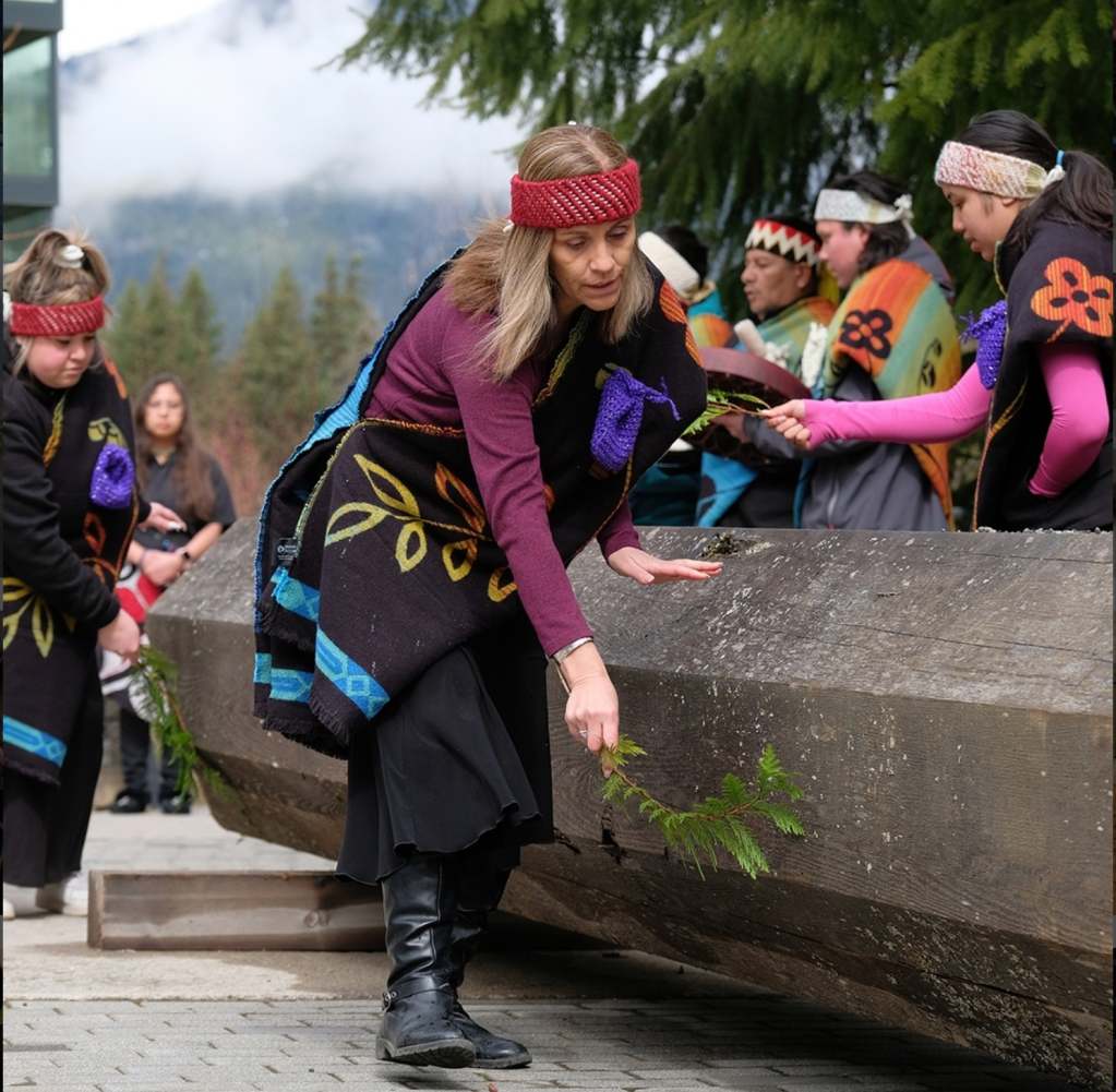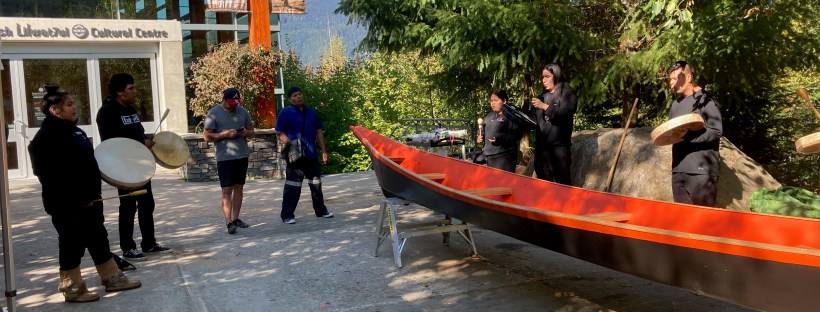 I was standing outside the Squamish Lil’wat Cultural Centre when the Reconciliation Canoe was completed. I’d been there for an event, when Heather Paul interrupted our lunch to let us know that the canoe was finished and team-members were singing and drumming to mark the moment.