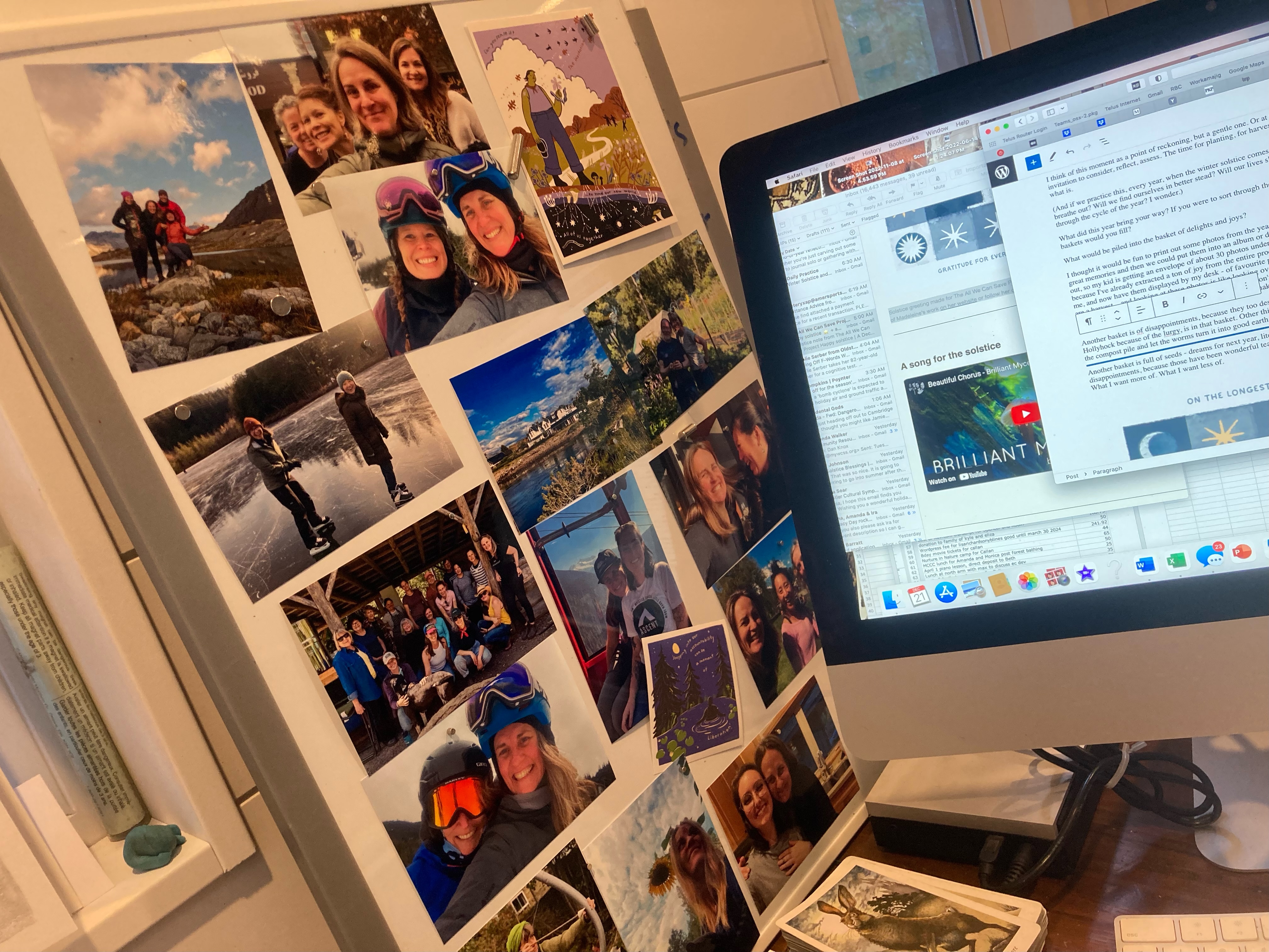 I thought it would be fun to print out some photos from the year, as a family Christmas gift… I’d pick photos of highlights and great memories and then we could put them into an album or display them somehow. I didn’t get the display component worked out, so my kid is getting an envelope of about 30 photos under the tree. I have no idea how this will land. But I don’t really care because I’ve already extracted a ton of joy from the entire process. (Ya, it’s all about me.) I printed an additional 16 photos just for me, and now have them displayed by my desk – of favourite people and moments – things that just bring me joy to look at. These are a harvest… and looking at these photos is like looking over a pantry full of jars and chutneys and pickles and sauces and lovely preserves and bushels of apples and syrup and honey (I don’t have a pantry like this, for the record. It is my fantasy pantry. And someone else has done the labouring for it. That’s what makes it a fantasy.)