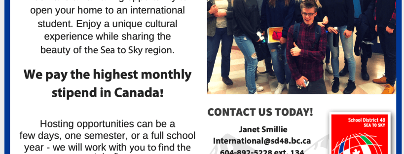 School District 48 (Sea to Sky) is looking for home stay families for international students