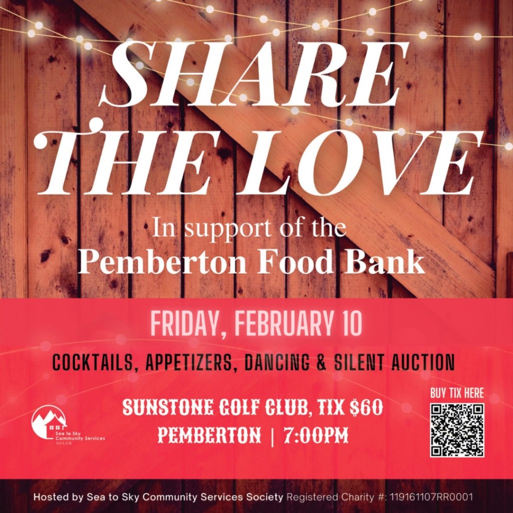 Share the Love on Friday, February 10 at Sunstone Golf Club in Pemberton for an evening of mixing and mingling, cocktails and appies, dancing the night away with Pemberton’s own Dakota Pearl, silent auction and more! Doors open at 7:00pm.