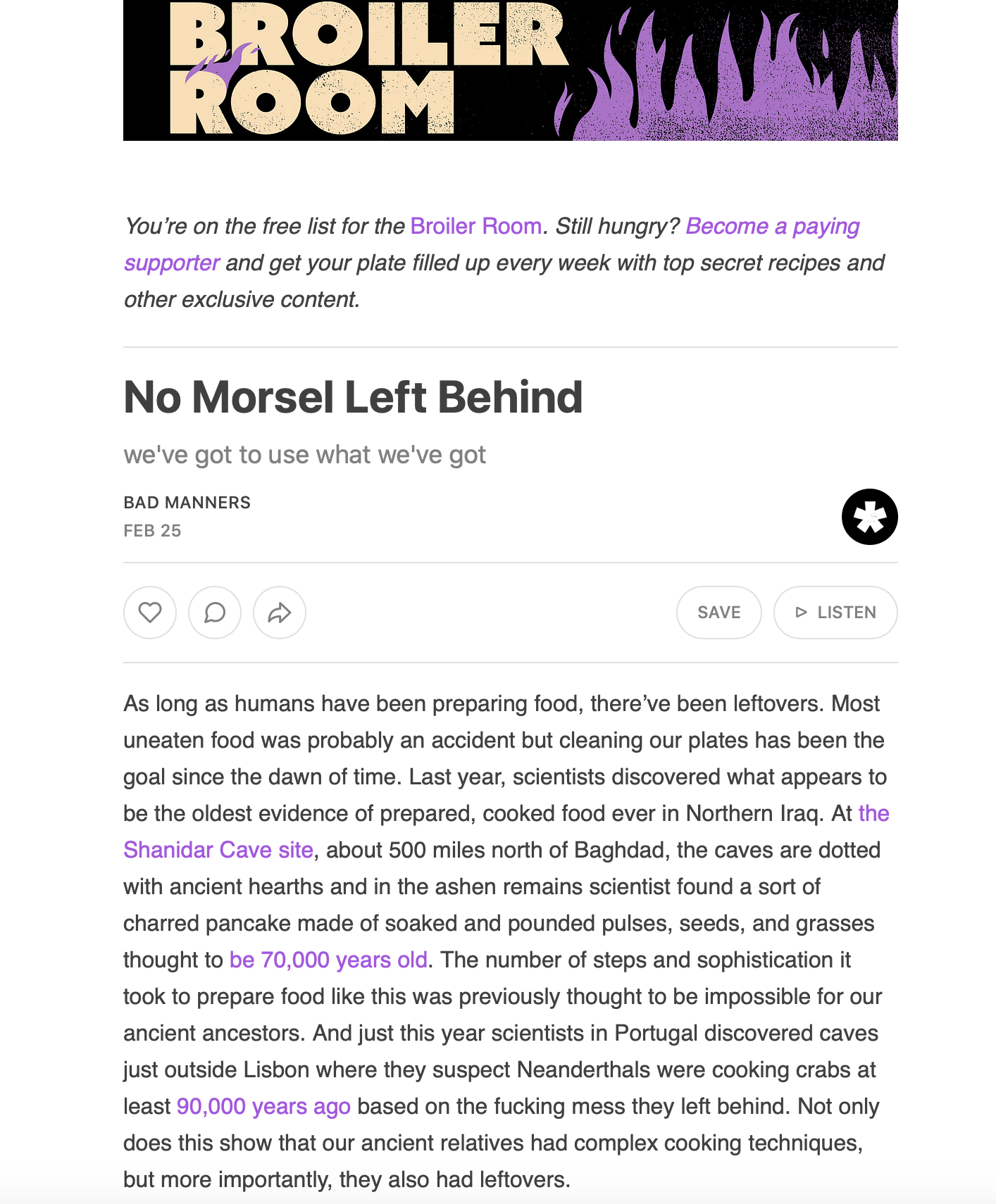 Here’s their latest free email newsletter, which says “don’t waste food” in such an entertaining way, it’s worth tucking into. (Curse-word alert. They do drop a few f-bombs.)