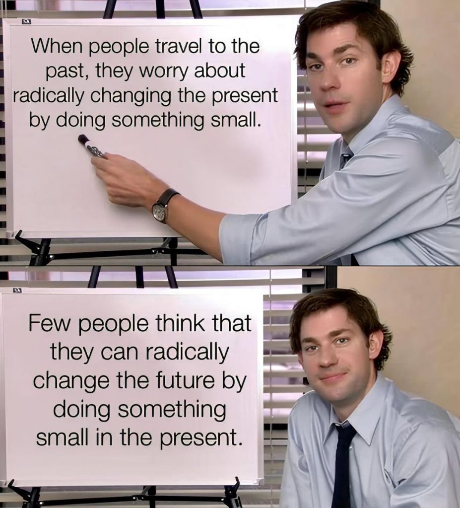 I feel like I’ve been banging on inordinately and forever about our power to shape the future – citing Rilke and the power of dreams, vision boards, practicing Active Hope and participating in Official Community Plans. And then I saw this. And was like, huh, wish I’d thought of that. All praise to those who can convey everything necessary in a short text, meme or memo. I salute you.
