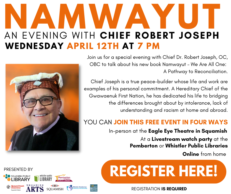 I’ve started Namwayut, and it’s compelling from the get-go. Grab a copy so you can participate in the Sea to Sky virtual book club discussions through March, or attend Chief Robert Joseph’s sharing on April 11. We’d love to hear from people as you work your way through the book – how is it going? What is resonating? What are you learning that is surprising to you?
