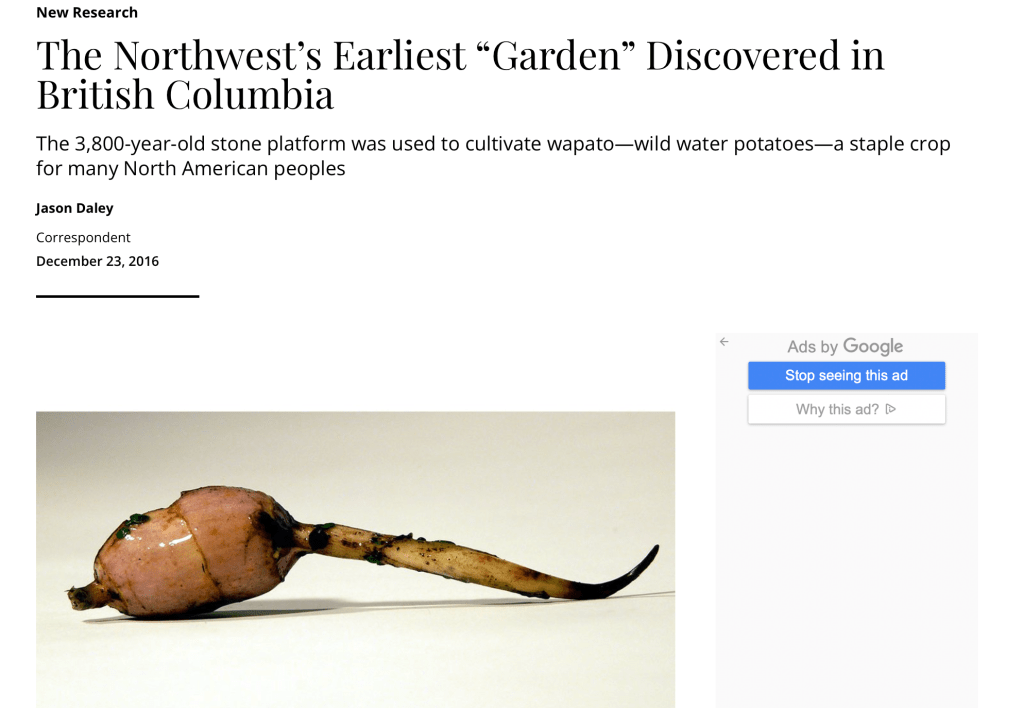 https://www.smithsonianmag.com/smart-news/northwests-earliest-garden-discovered-british-columbia-180961560/?fbclid=IwAR1pHgDK4YImHYUro-G2H73bAMx7SYNmvORhUvsuSCzjWWmaLWlpX1VqpUg