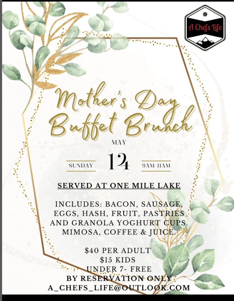 I heard that the line-up to go up Blackcomb on Monday, April 17, was all the way out to the liquor store… and certainly, the wintery conditions on Sunday, Whistler’s last day of ops, did nothing to scream “brunch” to me, but nevertheless, the calendar of events rolls on relentlessly disregarding climate and weather wobbles… and so, on May 14, in just a few weeks, we have the opportunity to celebrate your mother’s, your mother figures, your mothering, or any other reason you’d like to gather for brunch, and what better way to do it than in the hands of local chef and caterer, Steph, of a Chef’s Life, down at One Mile Lake. Al fresco. How lovely.