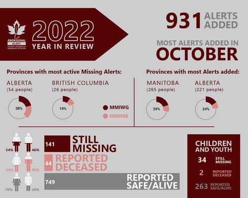 Last year, Aboriginal Alert reflected on the current state of safety for Indigenous people – just on Aboriginal Alert alone, 931 missing alerts of Indigenous people were added in the 12 months of 2022.
