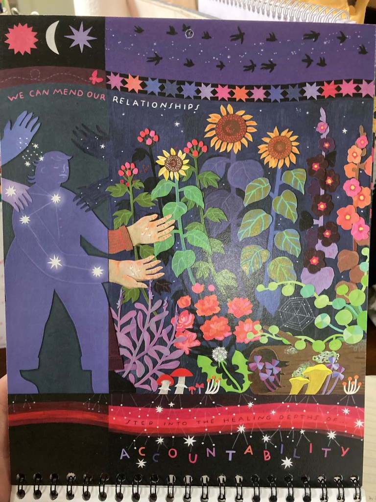 I also have a beautiful Molly Costello on my desk, and the May image “Step In”, says “We can mend our relationships and step into the healing depths of accountability.”